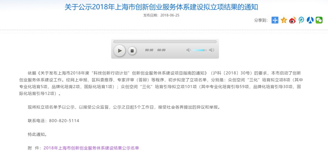 6月26日,在上海市科委发布的《关于公示2018年上海市创新创业服务体系建设拟立项结果的通知》上公布了2018年上海市众创空间“三化”(专业化、品牌化、国际化)培育的入围名单,蜂巢榜上有名!