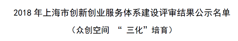 喜报 | 蜂巢获2018年上海市众创空间“三化”认定!