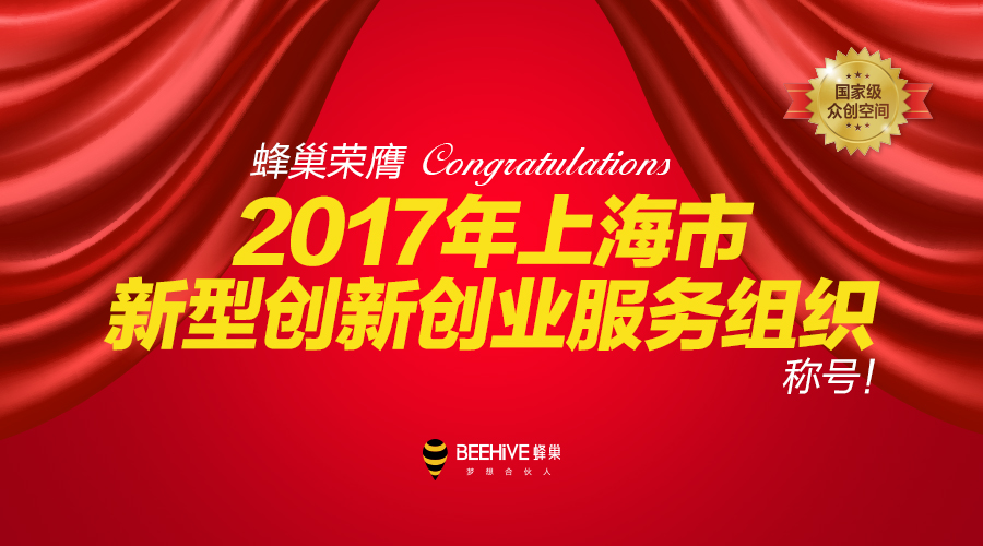 蜂巢荣膺2017年上海市新型创新创业服务组织称号!
